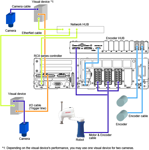 If you use a new model, connect the encoder line of the motor & encoder cable to the encoder hub's connector port indicated as "ROBOT-0" (on the left side viewed from the front).