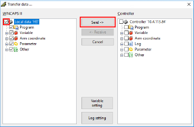 With WINCAPSIII, after getting data from the robot controller and changing to the project for extended-joint, send data to the robot controller.