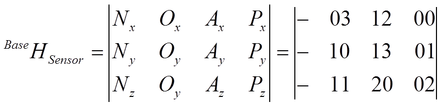 Homogeneous transform matrix of sensor detection position and default posture of holding the work are stored.