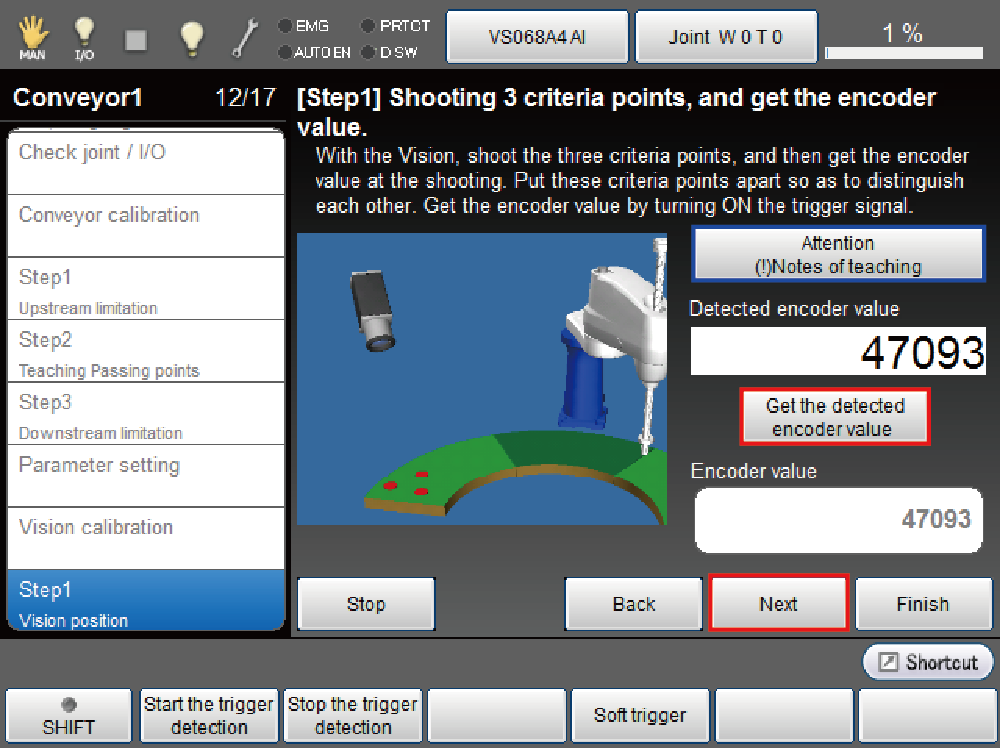 Obtain the encoder value of the shooting position by pressing [Get detected encoder value] button.