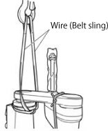As illustrated below, wind the belt sling around the robot base two turns and make a knot on the side opposite to the power connector.