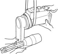 If the crane hoists the robot unit it may be turned upside down, stop the crane and have two workers turn the robot unit upside down, as shown below.