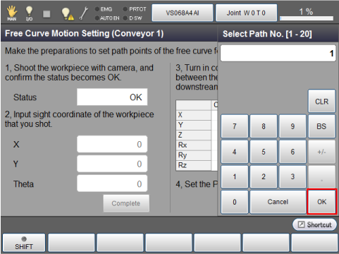 After confirming the message, press [OK]. The path will be registered. The free curve motion setting is complete.