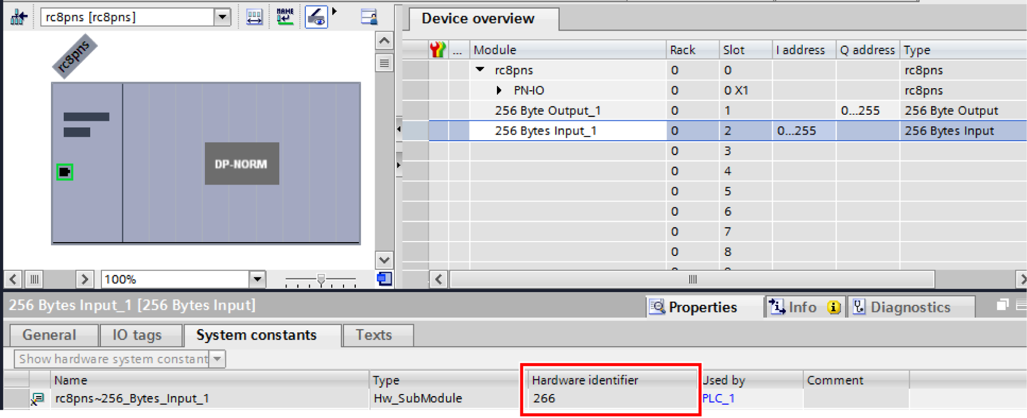 Since robot controller input data is set as the PROFINET IO input module, specify the hardware identifier of the input module in the input parameter "InAddress".