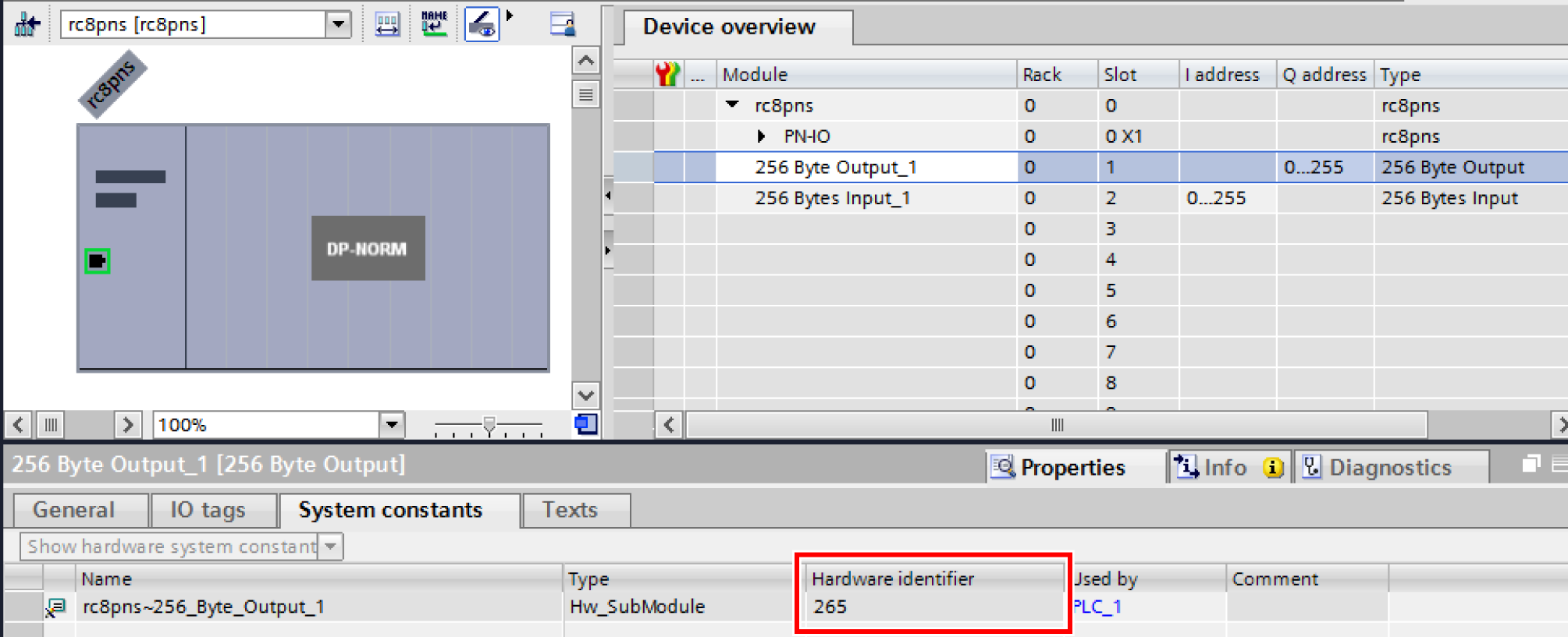 For example, to configure the settings shown in the figure below, specify "265" in the input parameter "OutAddress".