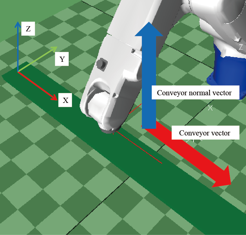 In case of Conveyor Tracking, the coordinates can be defined as shown below.