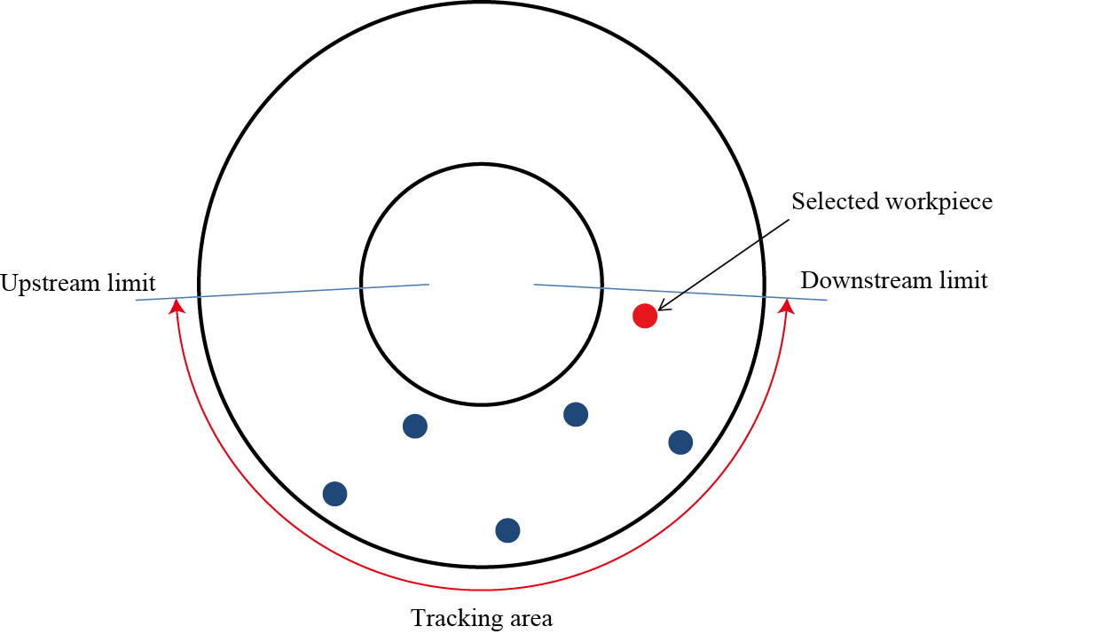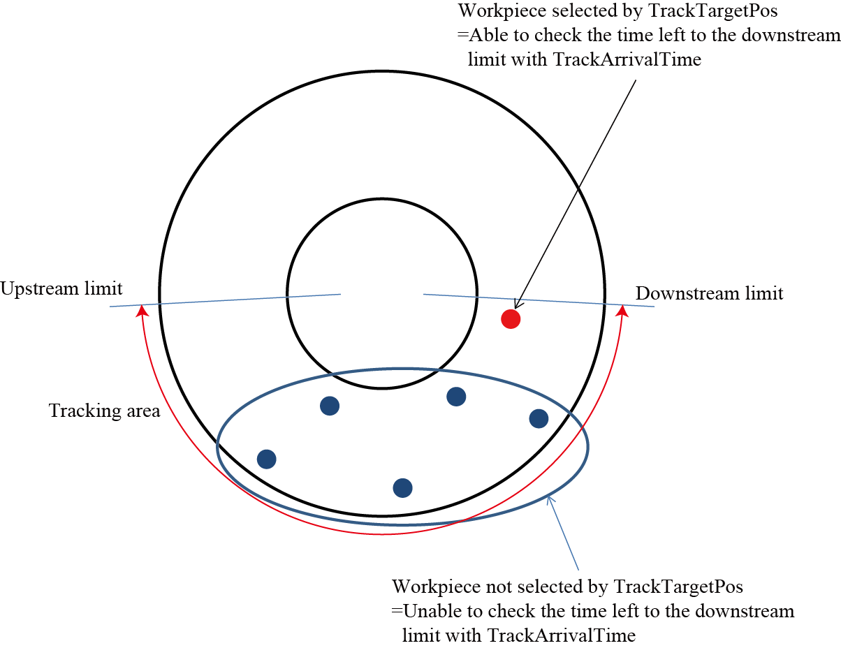 Even if a workpiece does not pass the downstream limit when selected the workpiece with TrackTargetPos command, that downstream limit may be passed while tracking is in progress, and an error may occur.