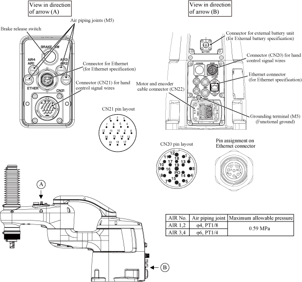 The following image shows the Ethernet- and the External battery unit-equipped robot unit.