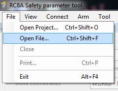 From the file selection window, open the project data folder, select SafetyParameter.bin.