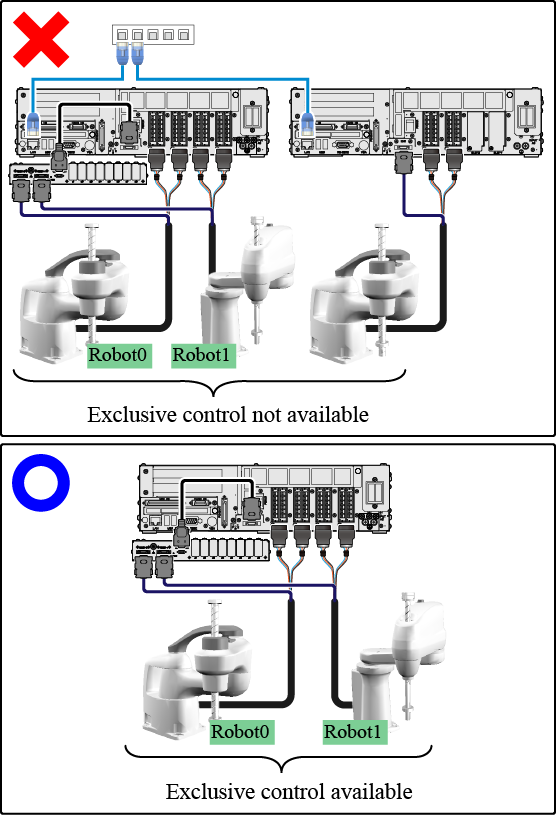 Note that the dual arm control function is not available for the RC8A robot controller safety motion specification and MC8A motion controller safety motion specification. |