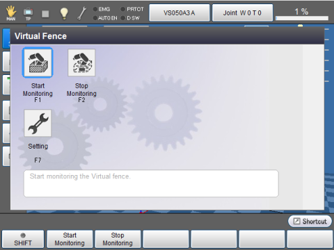 For details, refer to "Start and Stop of Monitoring"of Virtual Fence of FUNCTION GUIDE.