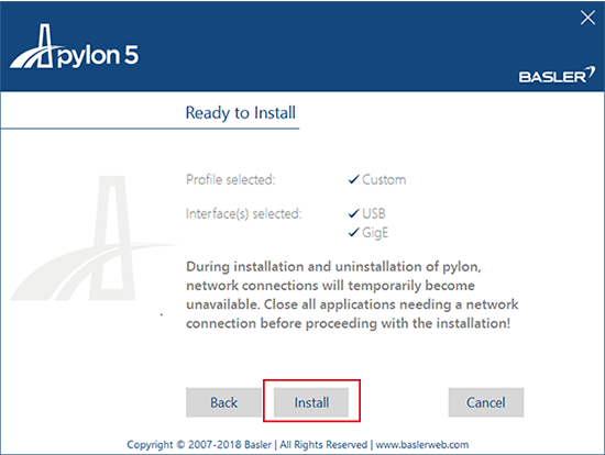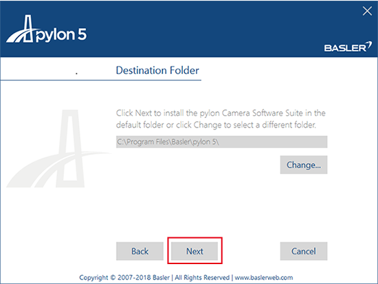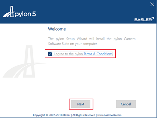 Double-click the Basler_pylon_5.0.12.11830.exe.