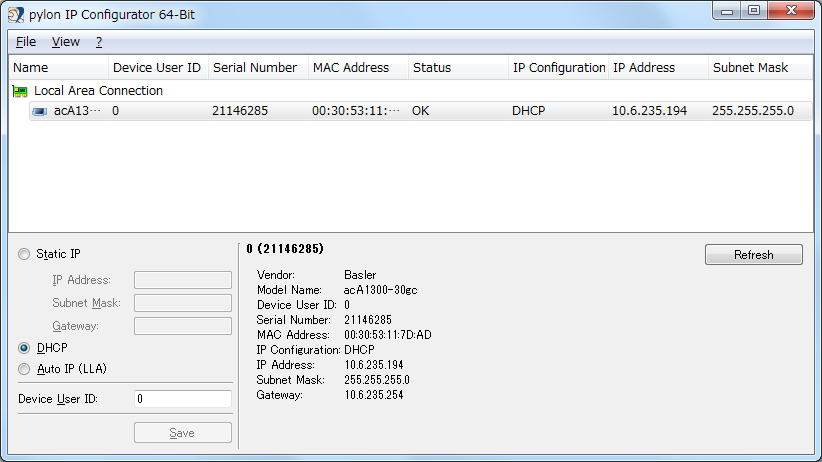 Set IP address, ID and a trigger mode with the pylon IP Configurator.