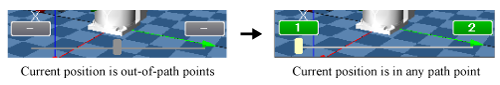 If the current position is out-of-path points, when the path point setting window appears, the path number icon is colored gray. If the current position is in any path point, the path number icon is colored green. (Ver.2.7.* or higher)