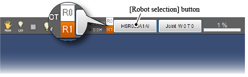 Check if the [R1] icon on the left of the [Robot selection] button turns orange. (See the figure below.)