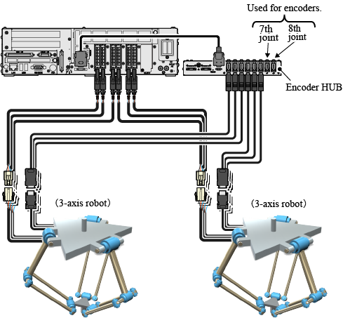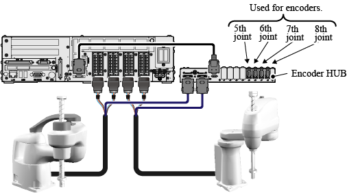 For example, if the combination of two robots is one of the following, from the 5th to the 8th joints (4 joints in total) can be used as encoders.