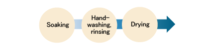 - After washing or sterilization, be sure to wash the chemical off with water and dry the jacket well before use. If the jacket is used with any chemical remaining on, it will deteriorate sooner. Even using it without being dried up causes molds to form and germs to grow. Make sure that the jacket should be dried in the shade.