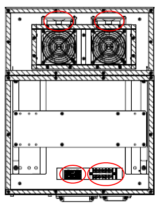 - Fans are installed on the top surface and the inside of the controller protective box Light.