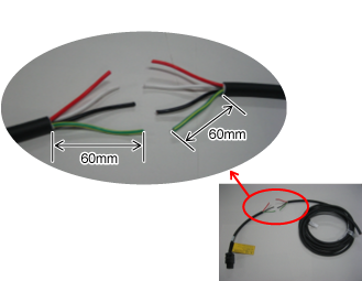 Remove the 6 mm of outer jackets of each line, then pass the cables through insulation tubes. (8 parts)
