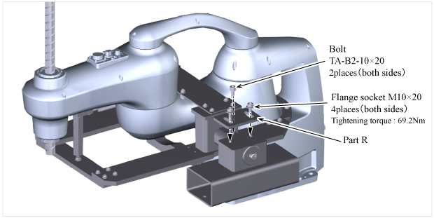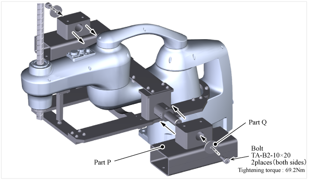 Install the jig assembled in STEP 1 to the robot carefully not to collide with the T-axis of the robot.