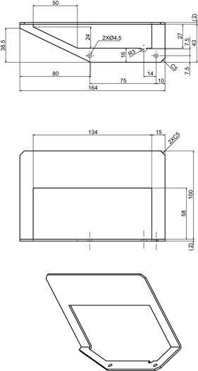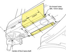 For the UL-listed robot unit with 600 mm stroke (HM-4*60*-UL), prepare stays L and R exclusively designed for the left and right sides, following the drawings shown below. This is because mounting the stay shown in above on this robot unit may cause the first arm cover to interfere with the stay when the robot arm moves near the factory default software motion limit position.