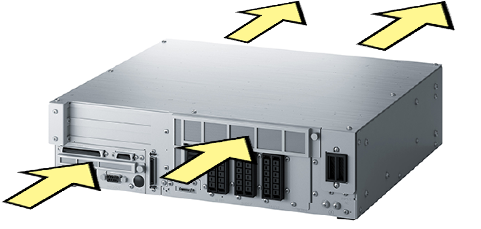 | Cooling fan in the robot controller | Hold up a hand to the exhaust port and check the wind is blowing off. | Should work properly. | Repair or replace. |