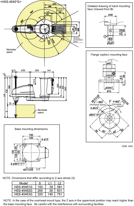 HSS-4545*; Arm Length 450 mm, Overhead-mount, Standard Type