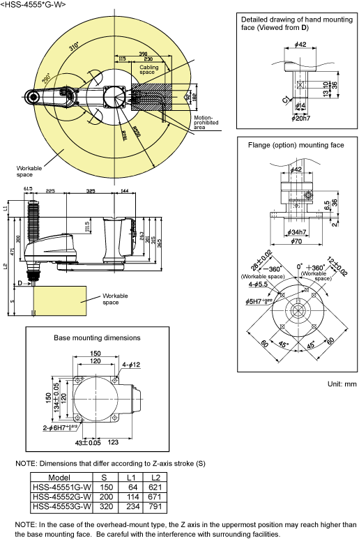 HSS-4555*-W; Arm Length 550 mm, Overhead-mount, Dust- & Splash-proof Type