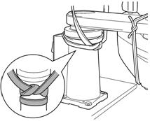 As illustrated below, wind the belt sling around the robot base two turns and make a knot on the side opposite to the power connector.