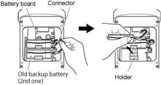 Connect a new battery (2nd one) to the battery board from which you have disconnected the old one in Step 6, and then load it into the holder.