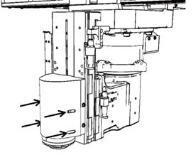 When loosening those bolts, be sure to support the T-axis unit by hand; otherwise, the T-axis unit will drop.