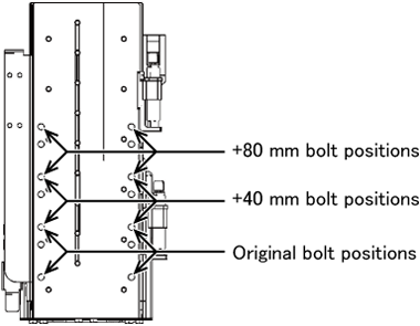 The XR series of robots allows the T-axis unit to be shifted by 40 or 80 mm in the positive direction of the Z-axis from the original mounting position as shown below.