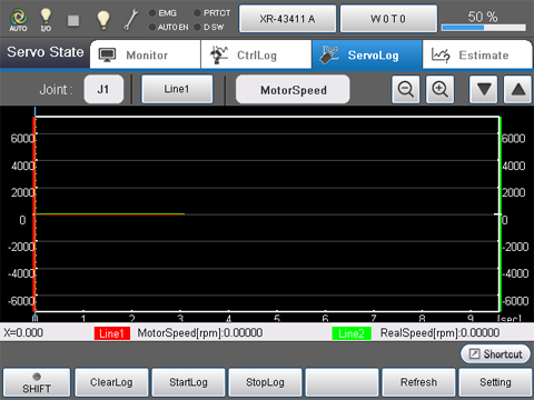 Press : [F2 Arm]-[F3 Servo State]-[ServoLog tab]