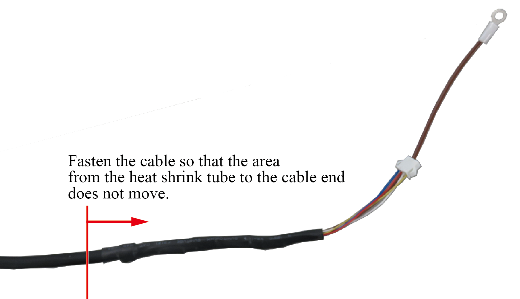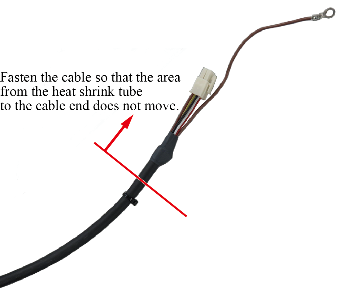 - To prevent wire disconnection or breaking wire, when you connect the encoder cable or the motor-junction cable to the extended-joint motor, fasten each cable so that the area from the heat shrink tube to the junction of the extended-joint motor does not move.