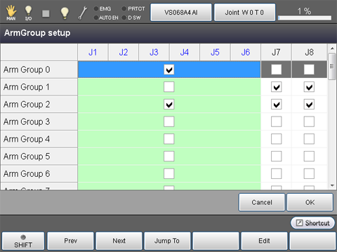 Top Screen — [F2 Arm] — [F12 Maintenance] — [F10 Joint Settings] - [F1 Arm Group]