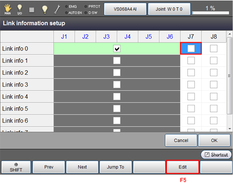 Select a joint that you would like to change the link information, then press [F5 Edit].