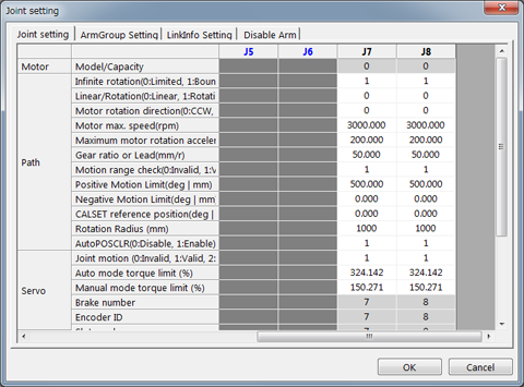 If you log on to WINCAPSIII as Programmer, you can configure the following parameters in the Joint Setting window.