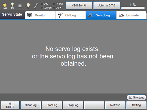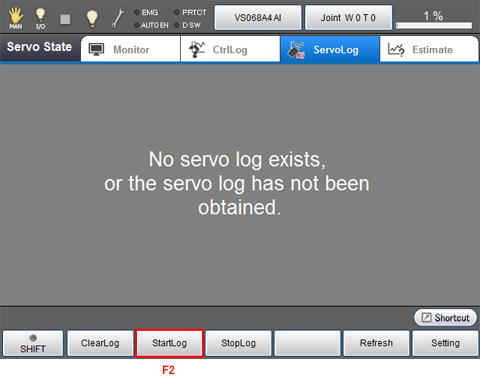 Top Screen—[F2 Arm]—[F3 Servo State]—[ServoLog tab]