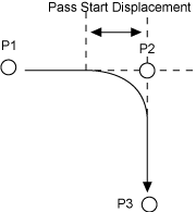 | @1~ | When the motion command value reaches the point away from the target position by the specified radius (Pass Start Displacement:1 mm or larger), the tool end moves on to the next motion. The radius is only a guide value, not the guaranteed value. |