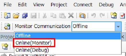 Choose Connect | Motor Communication | Online (Monitor) to connect WINCAPSIII to the robot controller and display its internal data.