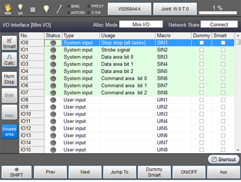 | [F4 Dummy Smart] | Set dummy input ON/OFF for the selected I/O number when "Dummy Smart" is checked. Set Smart input ON/OFF for the selected I/O numberwhen the "Smart" is checked. |