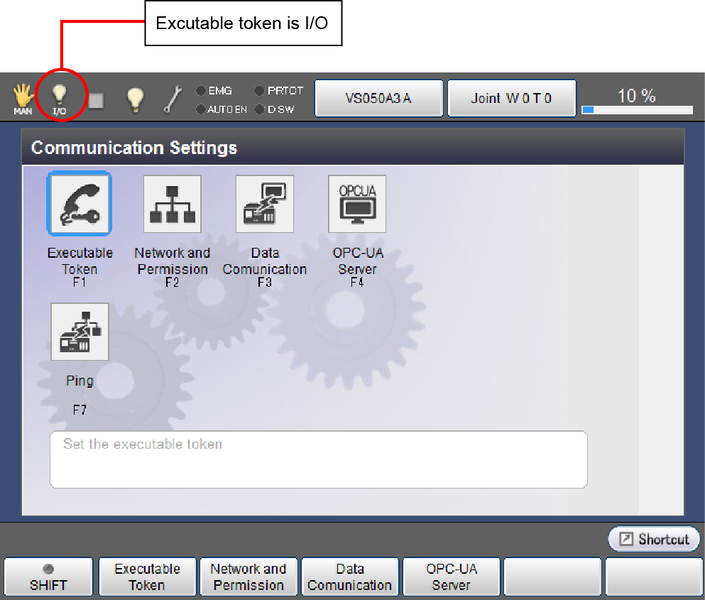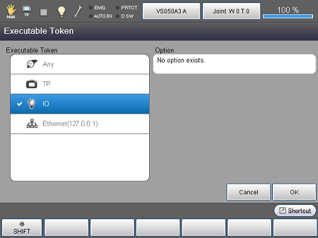 If the executable token is held by teach pendant, set the executive token to I/O in the following way.O.