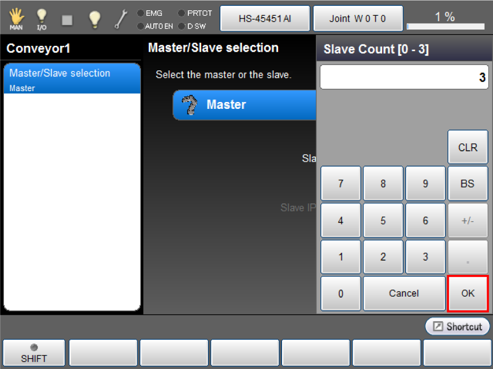 Enter the number of slave, and then press [OK].