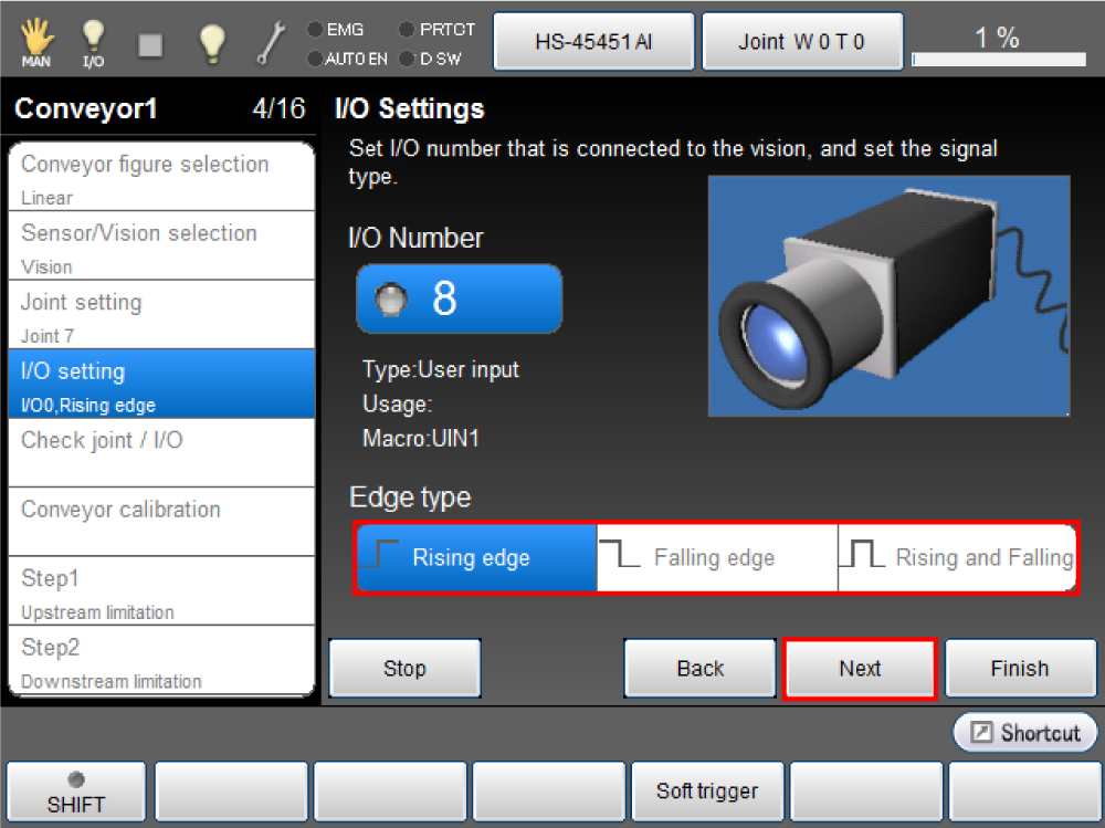 This section describes how to set the I/O port number that is connected to the sensor detecting workpiece, and the edge type.