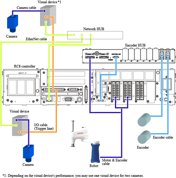 Configuration of the Conveyor Tracking System with Two Conveyors and One Robot