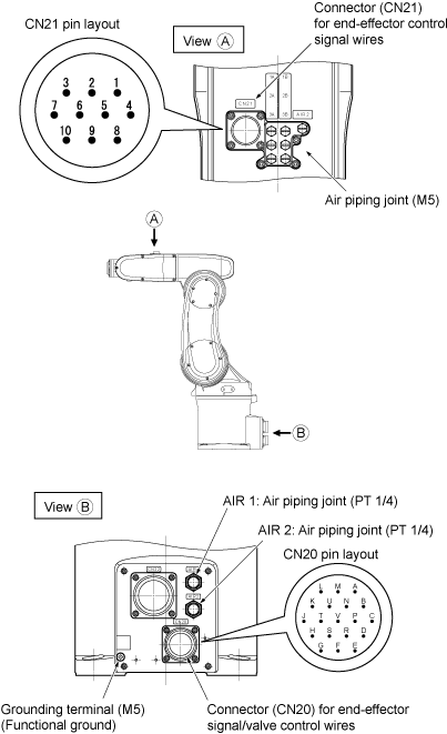 *1: The connector design was changed in May 2019. As these connectors are interchangeable, either connector can be used for robot connection. However, applicable wire diameter is different from the old and new models. If you use a new connector, select a cable that satisfies the applicable wire diameter listed in the above table.