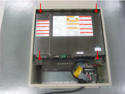 Remove two of M4 screws close to the terminal board. Tighten the FG harness which was mounted in the STEP5 and the FG harness of the motor & encoder cable, by each screws, respectively.