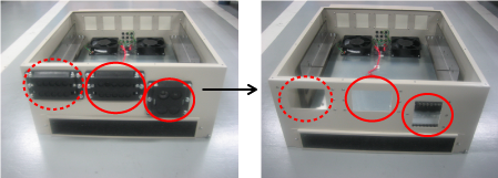 Remove two cable multi-outlet plates, marked by red circles (solid line) in the image below.