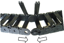 Using the other pin as a pivot, bend the cableveyor into a dogleg shape to split it.