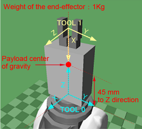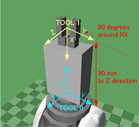 Tool1 coordinate : X=0 , Y=0 , Z=90 , RX=0 , RY=90 , RZ=0